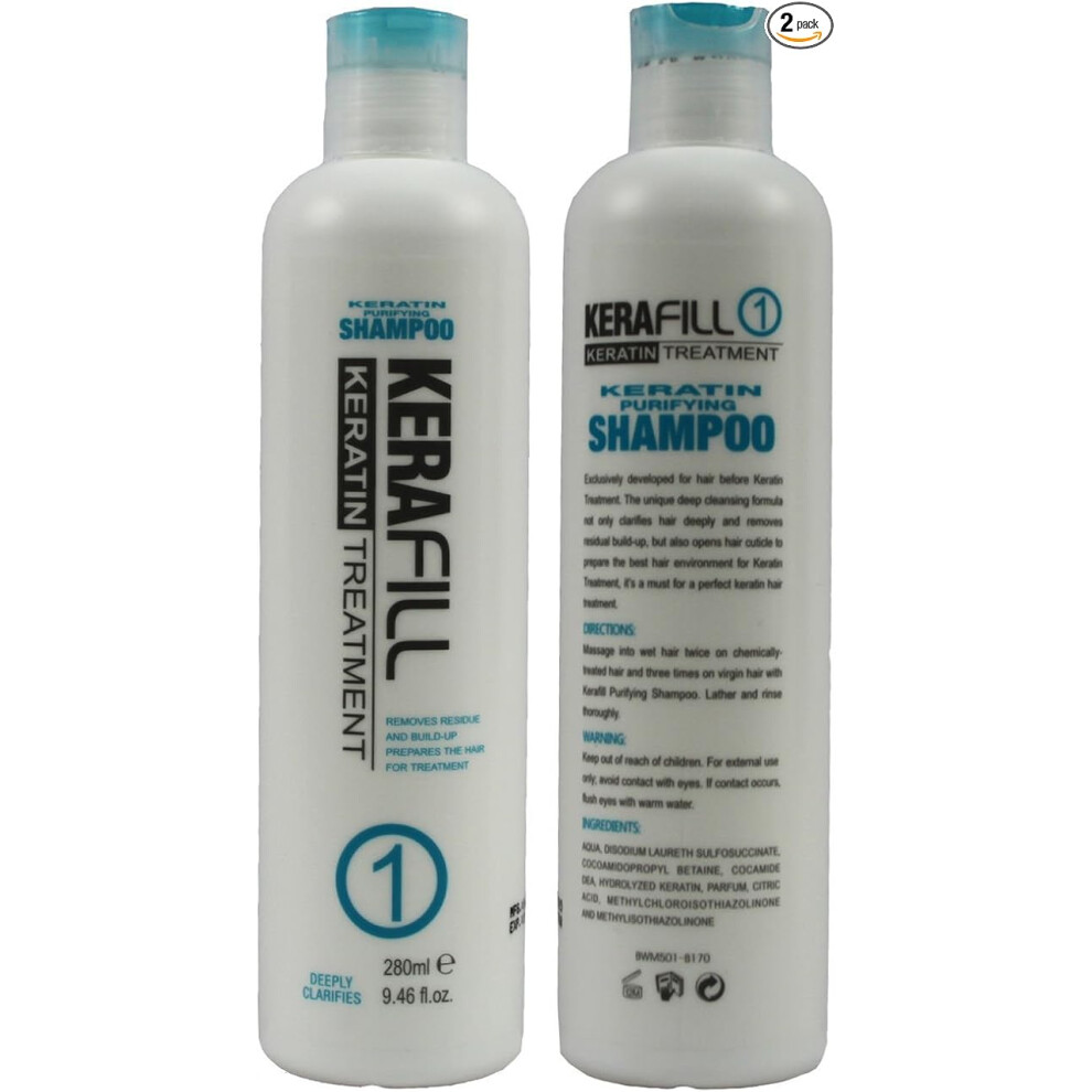 Keratin Hair Treatment Purifying Shampoo Conditioner & Keratin Hair Reconstructor Kerafill 280ml