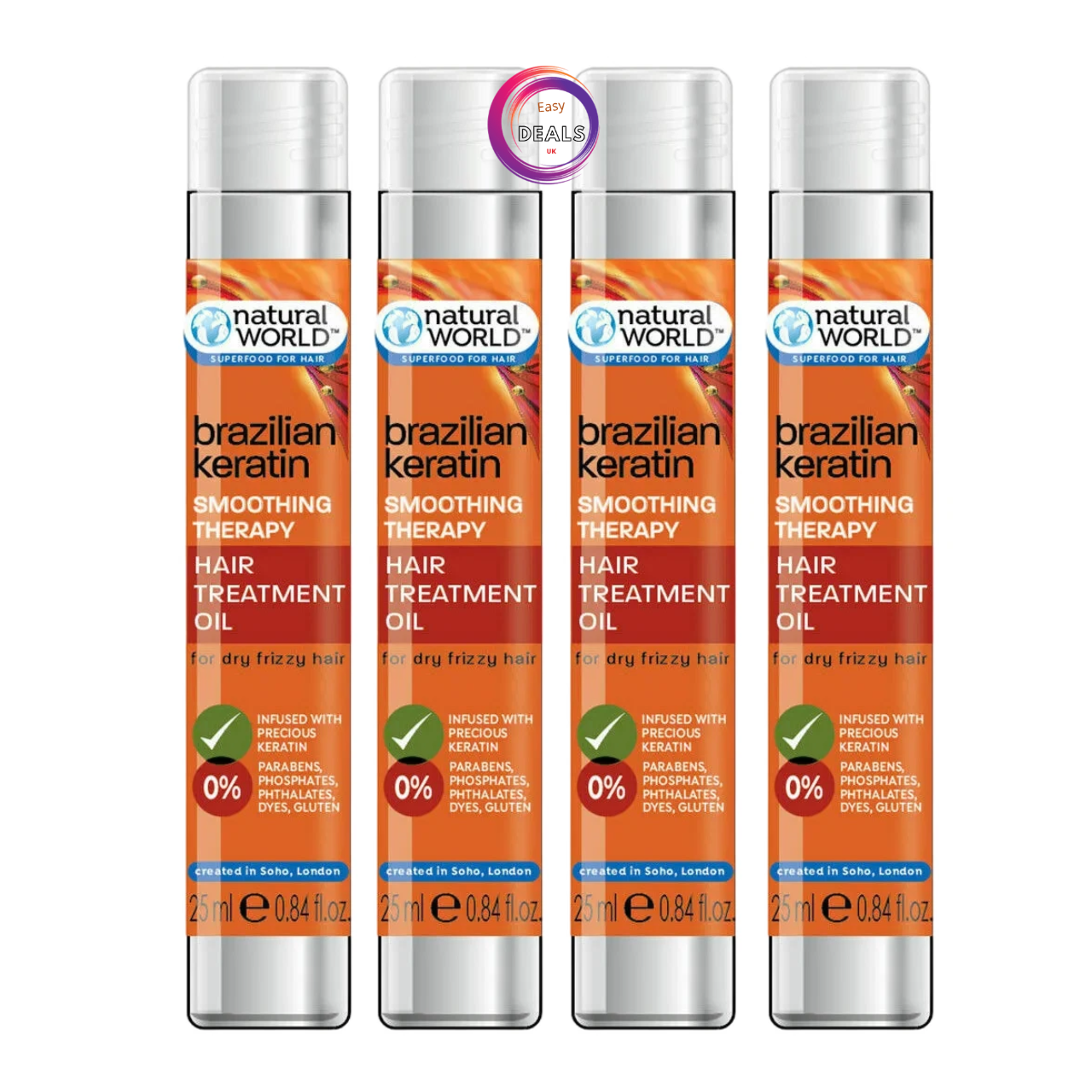 4x Natural World Brazilian Keratin Smoothing Therapy Hair Treatment Oil 25ml