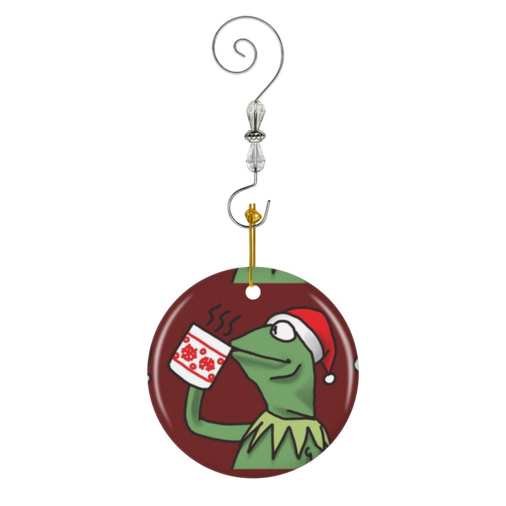 (Hot Chocolate Kermit Christmas Kermit_4359) Christmas Ornaments Ceramic with Crystal Hook Xmas Handmade Tree Decorations Keepsake Gifts Stocking Stu