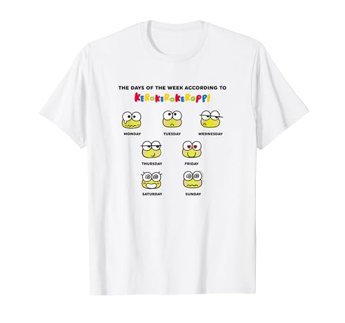 Keroppi Days of The Week Mood Sanrio Cute Japan Meme T-Shirt, Women, White, Small