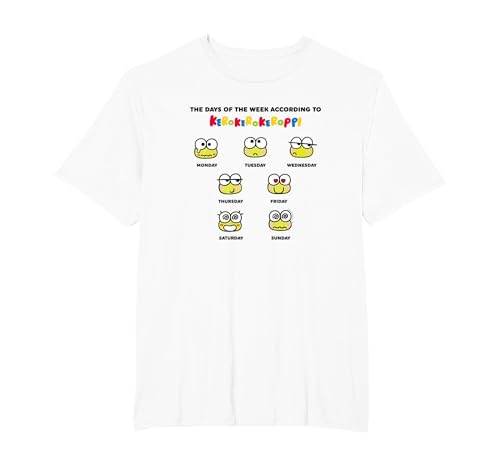 Keroppi Days of The Week Mood Sanrio Cute Japan Meme T-Shirt, Men, White, Small
