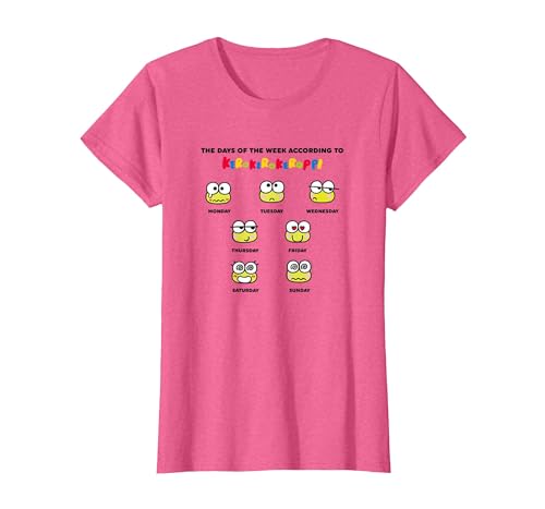 Keroppi Days of The Week Mood Sanrio Cute Japan Meme T-Shirt, Women, Pink Heather, Medium
