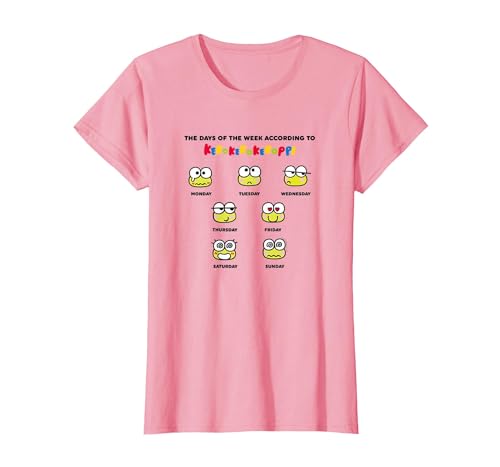 Keroppi Days of The Week Mood Sanrio Cute Japan Meme T-Shirt, Women, Pink, X-Small