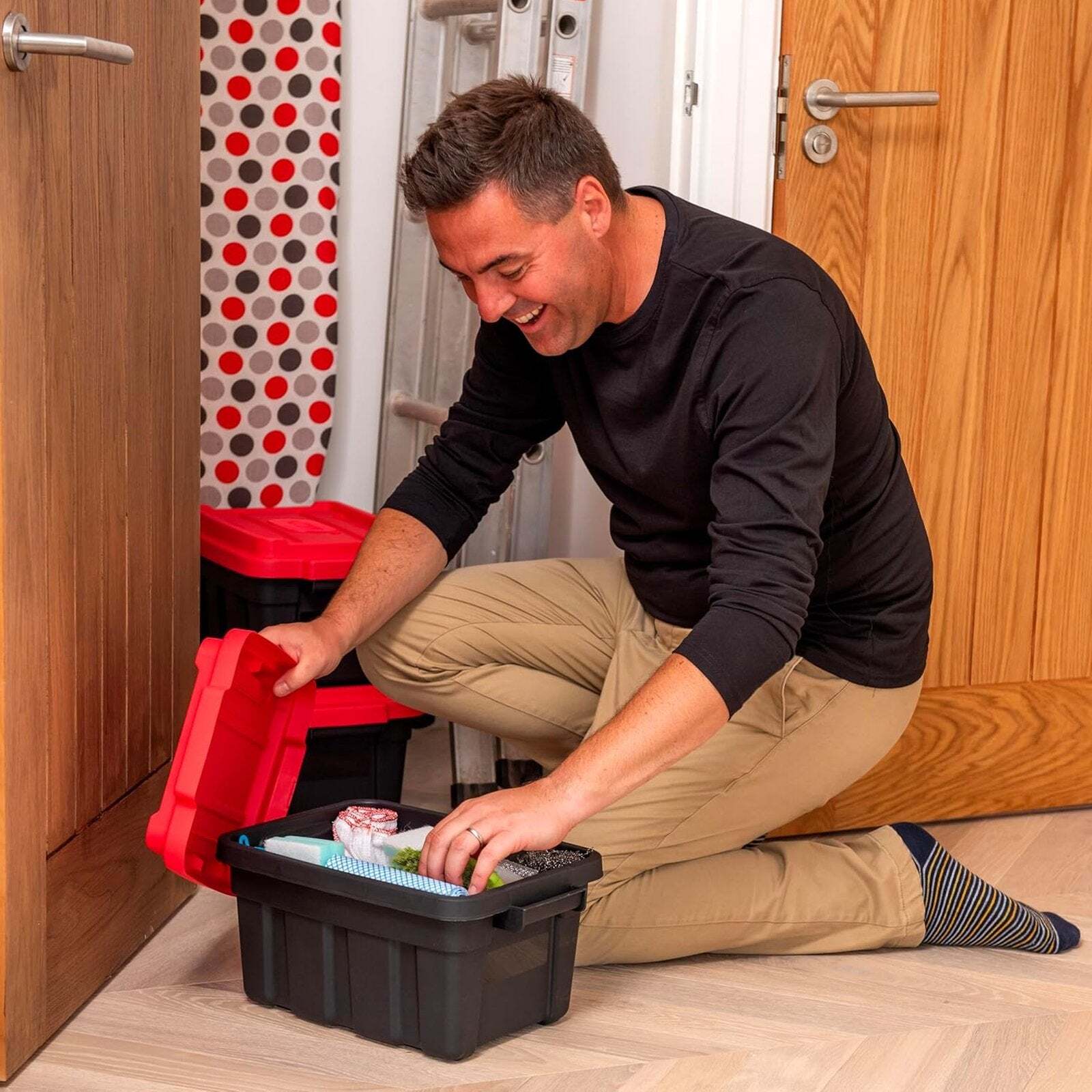 Keter Black And Red 37L Tuff Storage Crate With Lid Strong Stackable Box