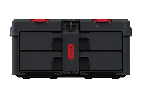 Keter Stack n' Roll Modular DIY 2 Drawer Tool Storage Box, Stackable, Lightweight, Durable, Water Resistant, Black