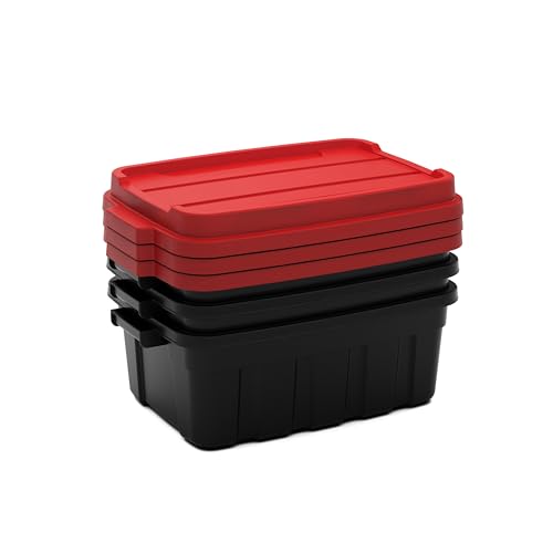 Keter Tuff Box 68L Storage Box with Lid, Durable, Water Resistant, Large Capacity, Stackable, Black/Red