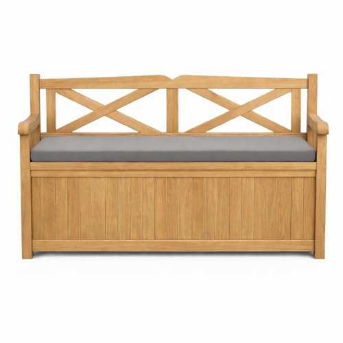 David & Amaya Garden Iceni & Eden Storage Bench Seat Pad Only – Outdoor Replacement Cushion Grey 128x50x5cm Durable Water-Resistant Removable Cover – Comfortable Patio & Swing Furniture Cushions