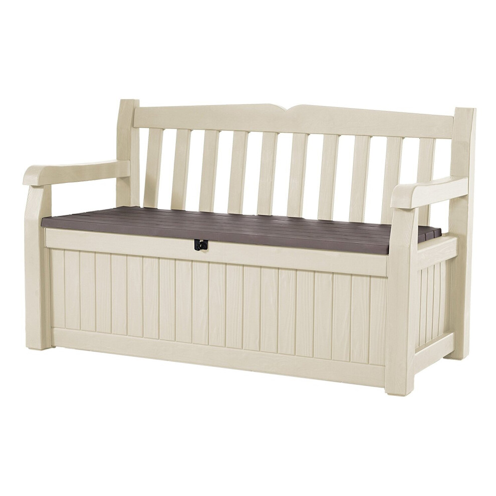 Keter Eden Bench 265L Outdoor 60% recycled Garden Furniture Storage Box Beige & Brown Wood Panel Effect | Fade Free | All Weather Resistant | Safe and