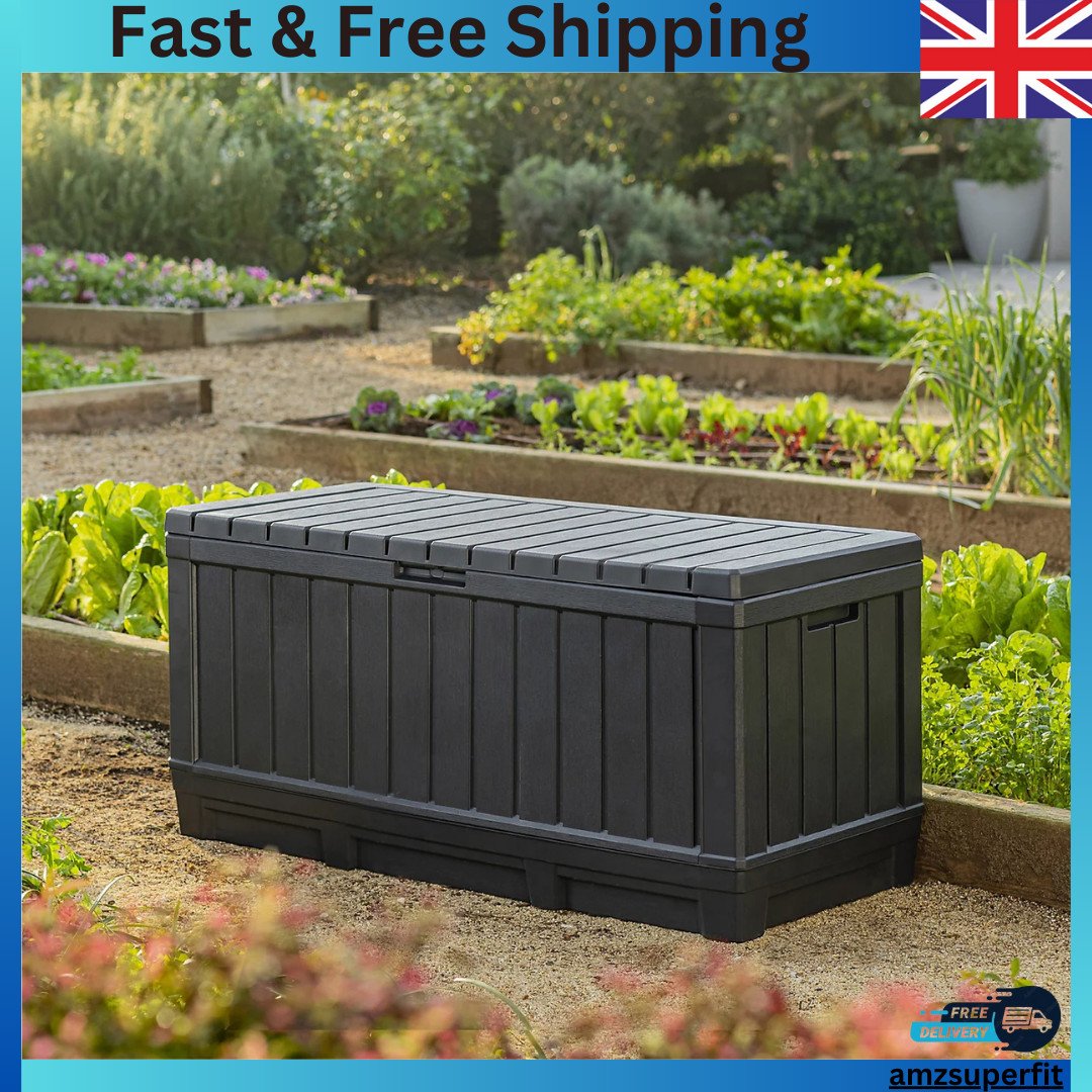 Keter Kentwood 350L Garden Storage Box–Graphite Resin 4x2, Lockable Weather resi