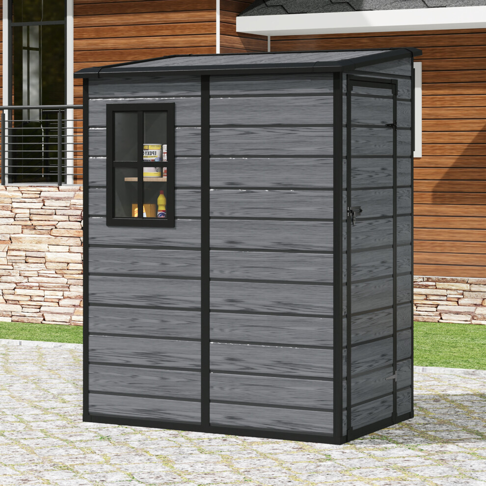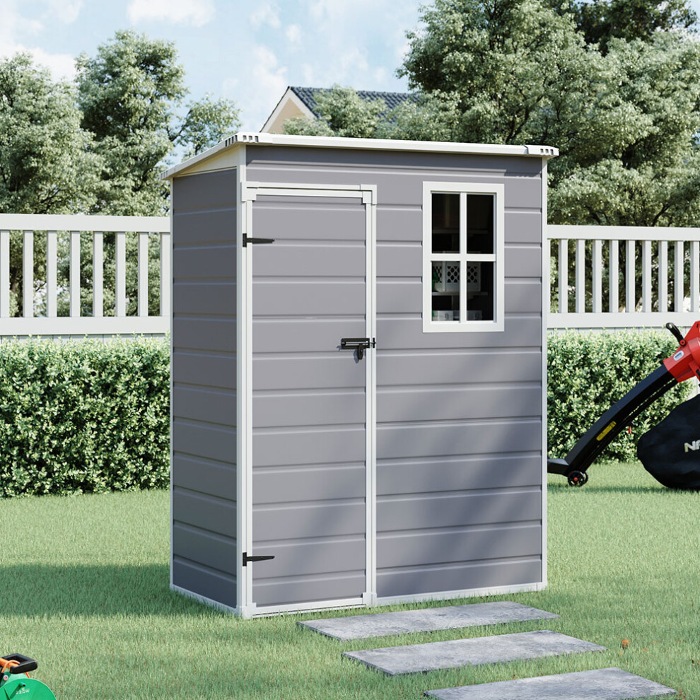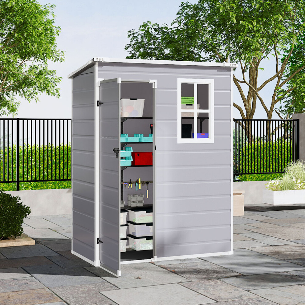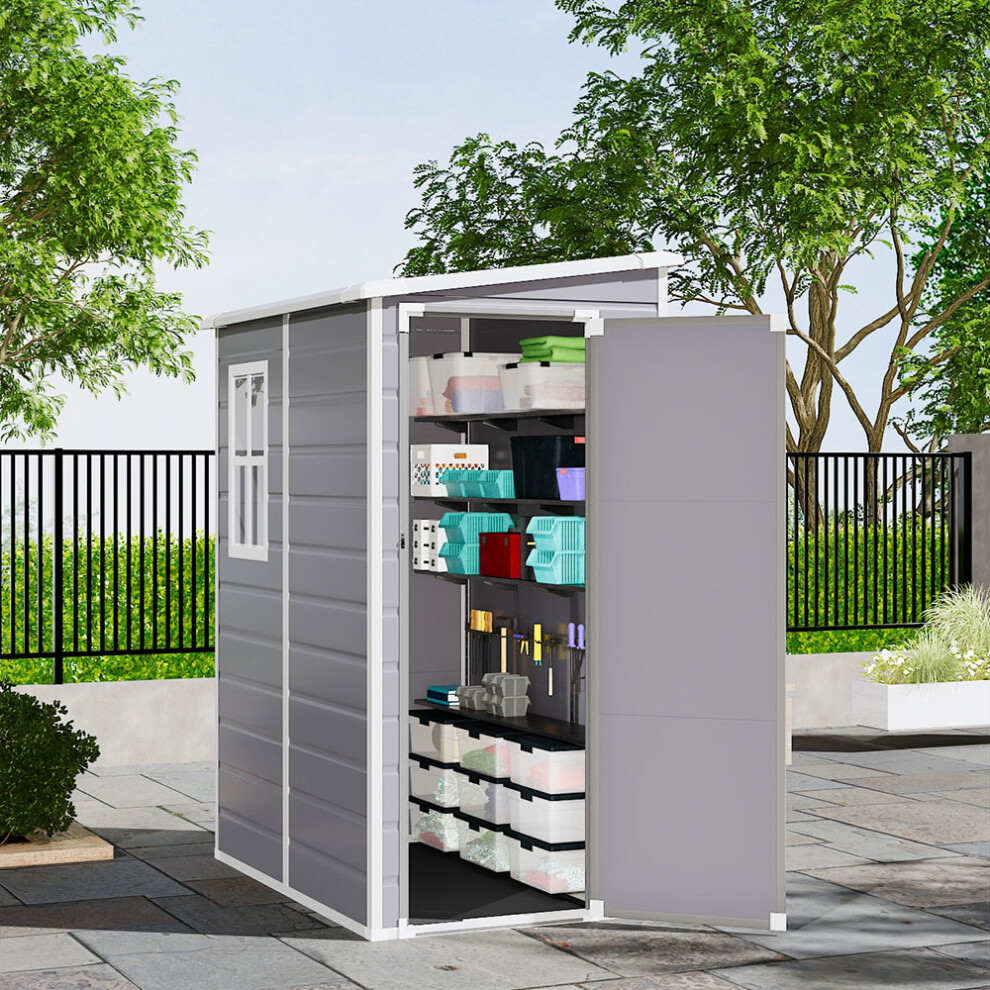 Grey Plastic Outdoor Garden Storage Shed 5x3ft with Lockable Door, Windows, Base & Easy Assembly; Waterproof, UV-Resistant Tool & Bike Storage