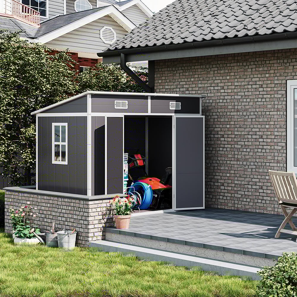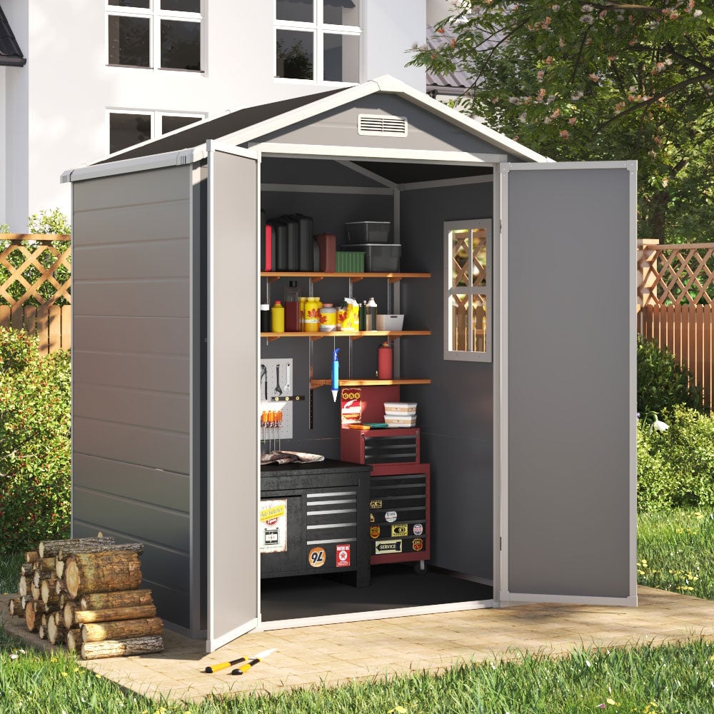 Plastic Storage Garden Shed 6.3ft x 6.2ft Grey Med Roof Outdoor
