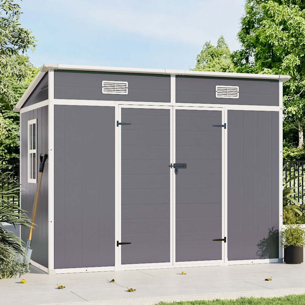 6x4.5ft Plastic Garden Shed Outdoor Storage Tools Shed Lockable Double Door Apex