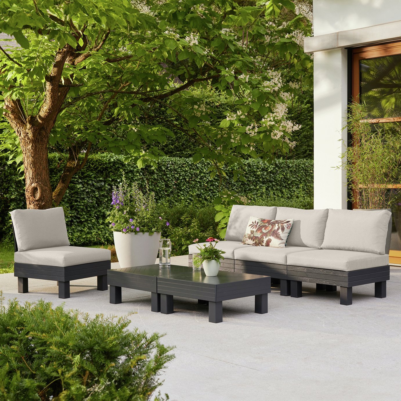 Keter Elements 5 Seater Plastic Garden Sofa Set - Grey