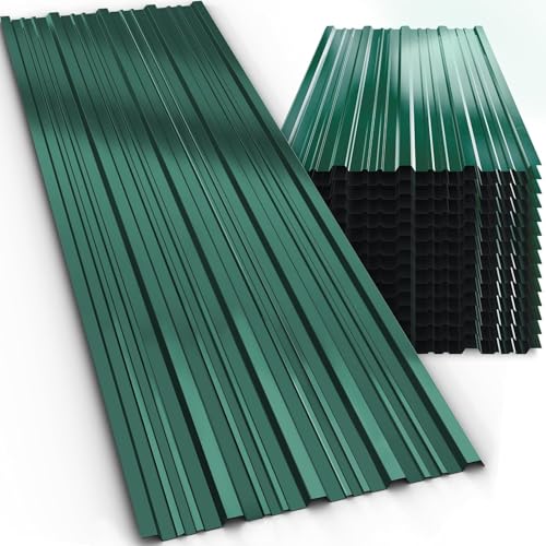 GARDEBRUK® 12x Corrugated Metal Roofing Sheets for Garden Shed, Metal Sheds, Plastic Sheds & Greenhouse | 7m² Galvanised Roof Panels for Outdoor Storage, Bin Store & Bike Shed | Green 129x46cm