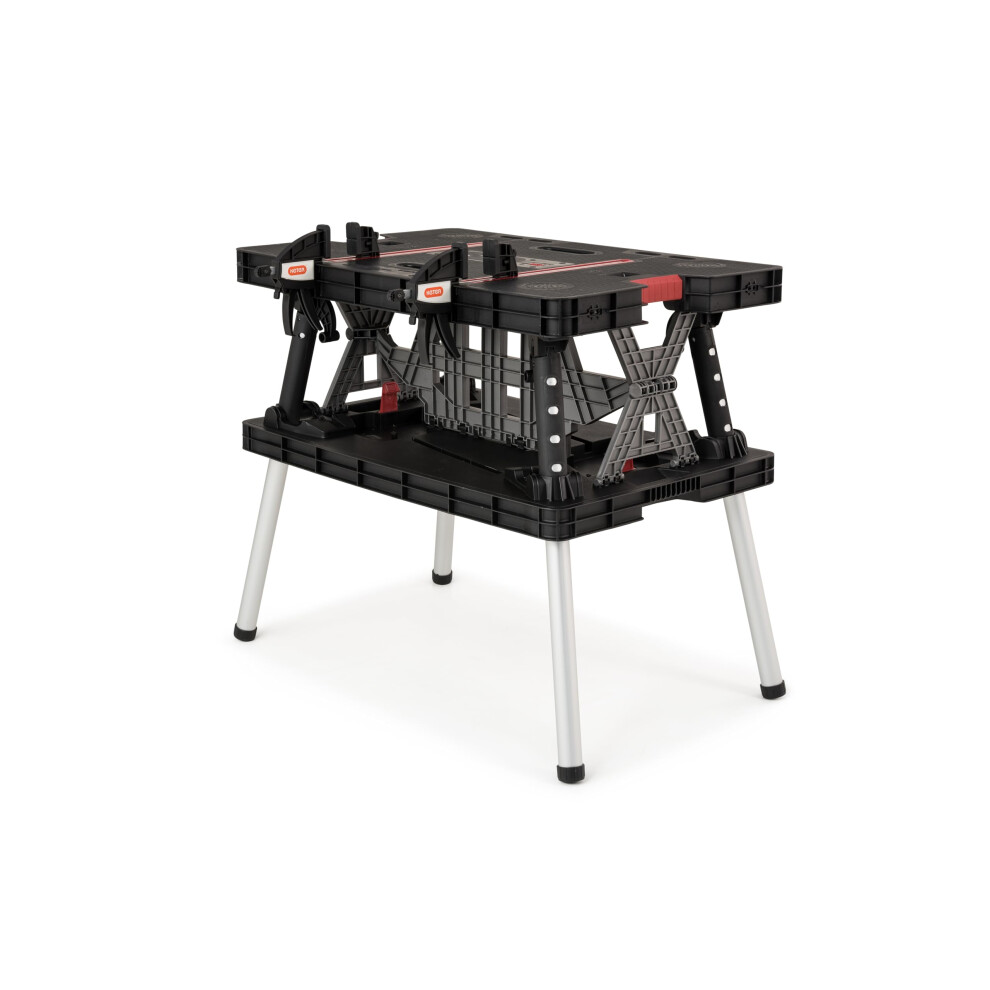 Keter 17182239 Master Pro DIY Folding Work Table - 85 x 55 x 75.5 cm, Black/Red, 453 kg Capacity, Quick-Open, No Assembly, 2 Clamps