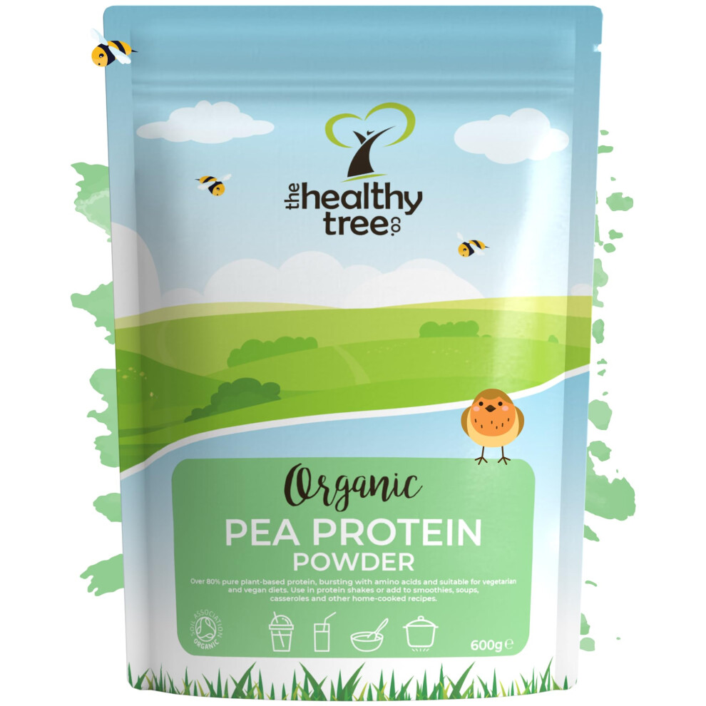 Organic Pea Protein Powder - European Vegan Protein Powder by TheHealthyTree Company for Muscle Growth & Recovery - Non-GMO and Keto - Natural Unflavoured Pea Protein (600g)