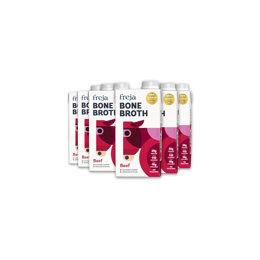 Freja Beef Bone Broth | Grass-Fed | Collagen, Protein & Amino Acids | Low Carb, Keto & Gluten Free | Clear Liquid Broth, not Beef Stock Cubes, Powder or Concentrate | 6 x 500ml