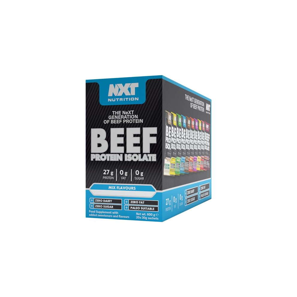 NXT Beef Protein Isolate 20 Sachets - Mixed Selection Box | Protein Powder High in Natural Amino Acids - Paleo, Keto Friendly - Dairy and Gluten Free