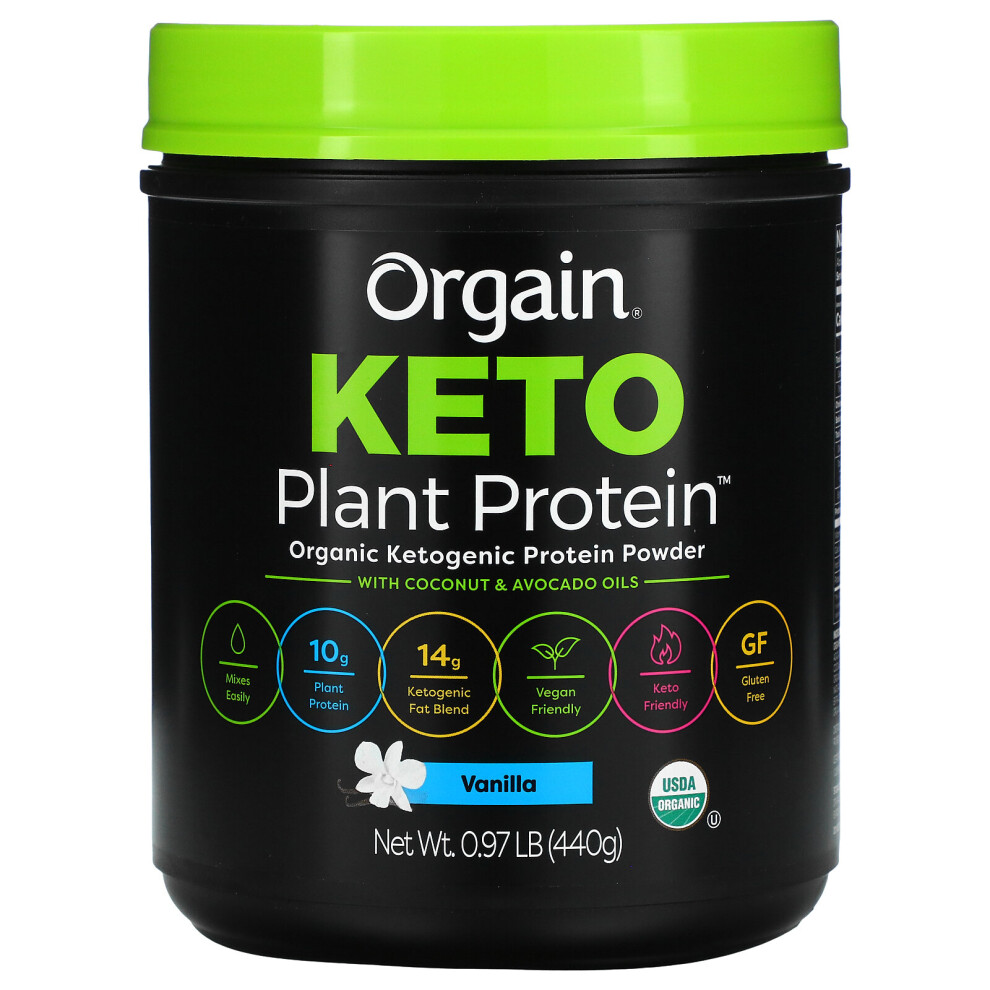Orgain, Keto, Organic Plant Protein Powder with Coconut & Avocado Oils, Vanilla, 0.97 lb (440 g)
