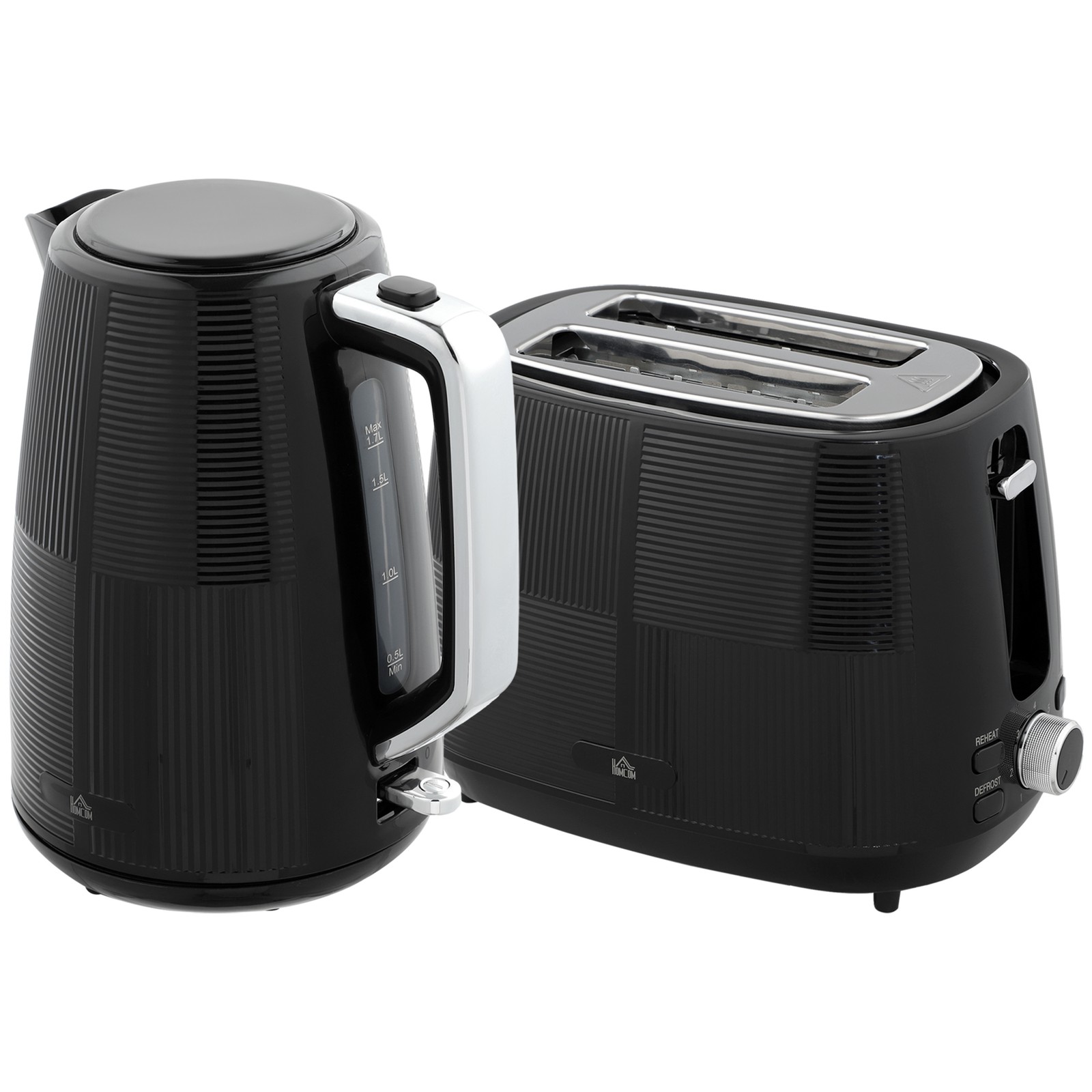HOMCOM 1.7L 3000W Kettle and Two-Slice Toaster Set with Auto-Shut Off and Browning Controls - Black, Black