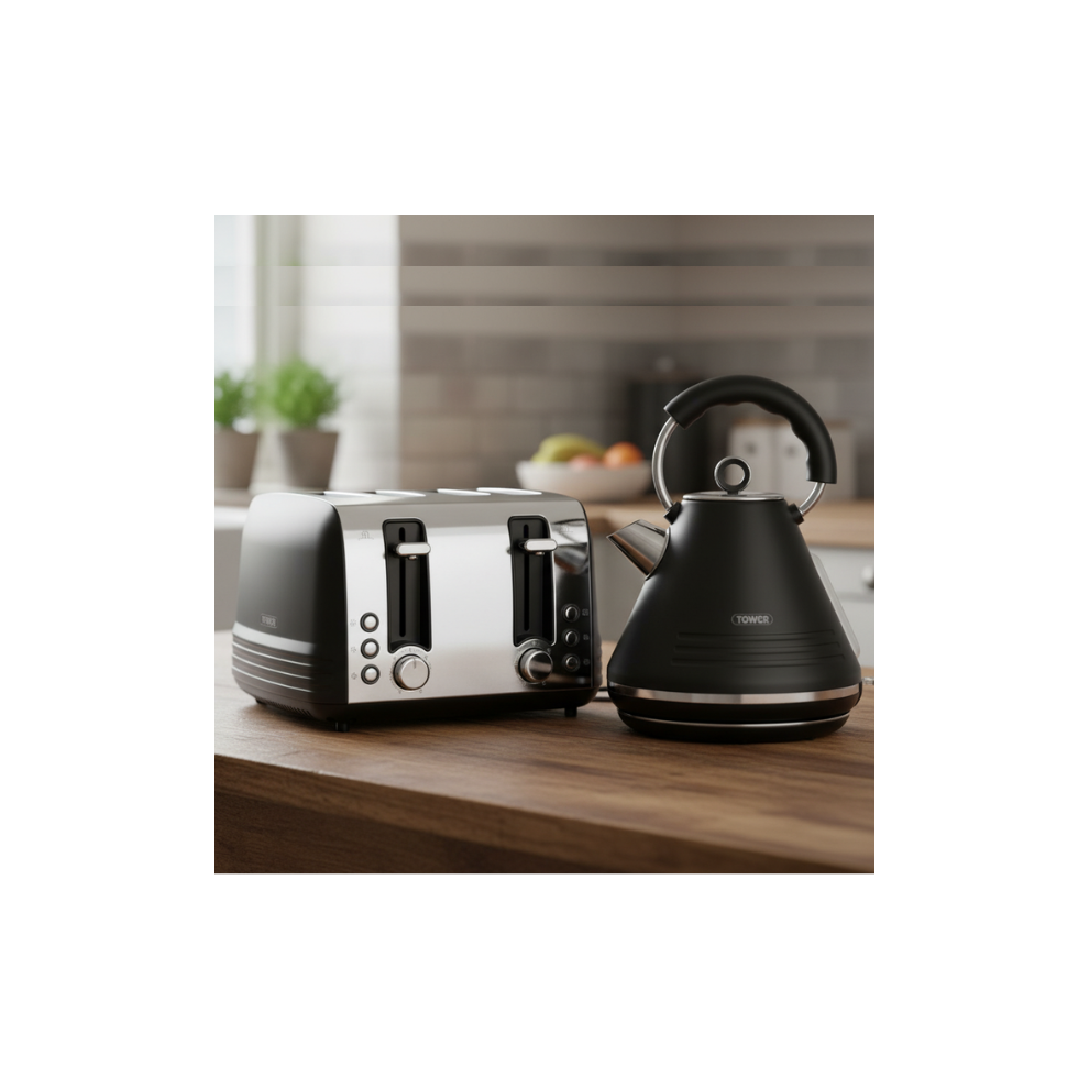 Morphy Richards Vector Pyramid Kettle and 4-Slice Toaster Set – 1.7L Rapid Boil Traditional Kettle with Anti-Limescale Filter & Variable Browning 4-Slice Toaster, Black 108131 | 248131