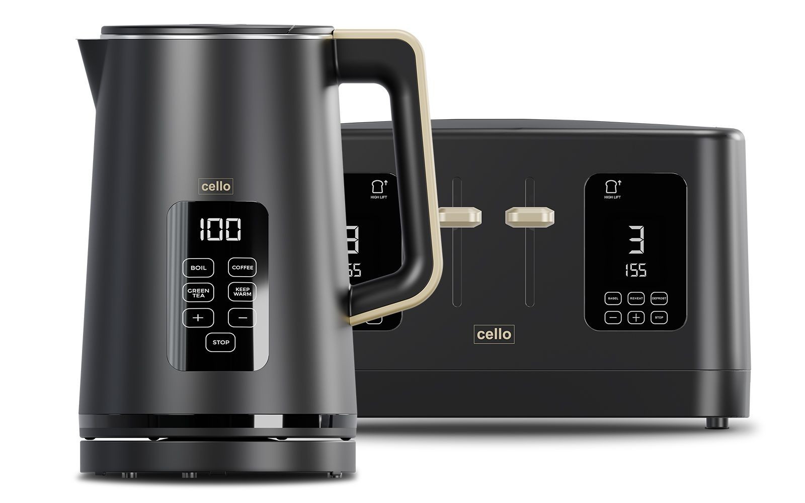Cello Kettle and Toaster 4 Slice Set Digital BLACK Fast FREE DELIVERY