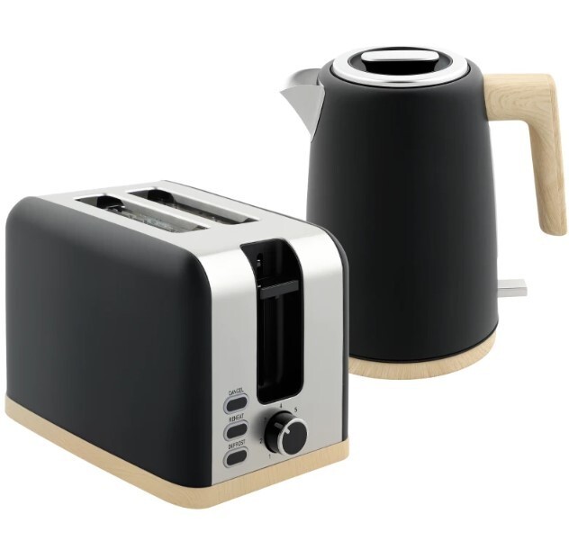 Kettle & Toaster Set Black PP Stainless Steel 22.4L x 15.6W x 23.9Hcm Matte Wood