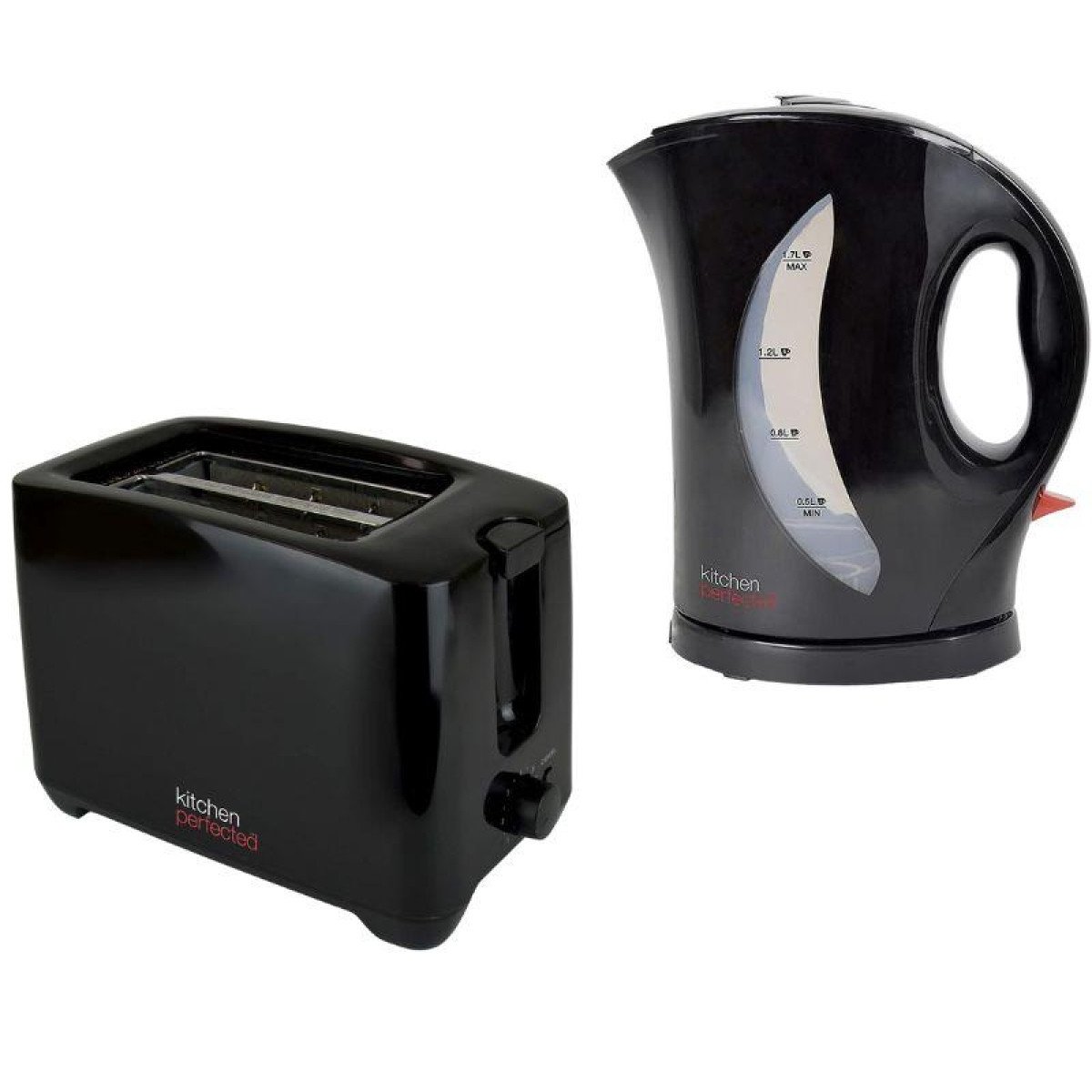 Kettle and Toaster Set Black PP 1.7L Kettle 25.5cm Toaster Chrome Accents Rapid