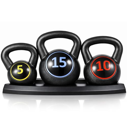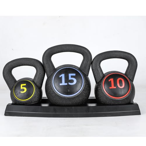 Kettlebell Set 3pcs Kettle Bell Weight with Stand for Home Gym 5lb, 10lb, 15lb