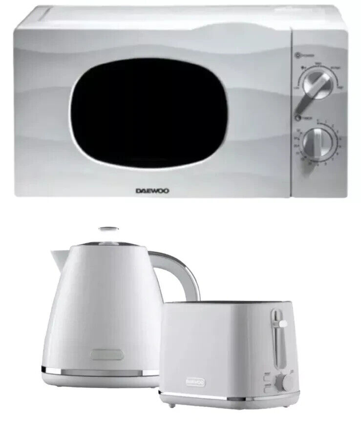 Daewoo Pyramid 1.7L Kettle & 2 Slice Toaster 20L Solo Microwave Combo Set White