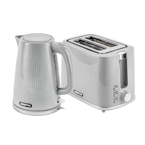 Geepas Cordless Electric Kettle & 4 Slice Bread Toaster Kitchen Combo Set | 1.7L 2200W Fast Boil Kettle |1400W Fast Toaster with 6 Level Browning Control | 2 Year Warranty, Grey