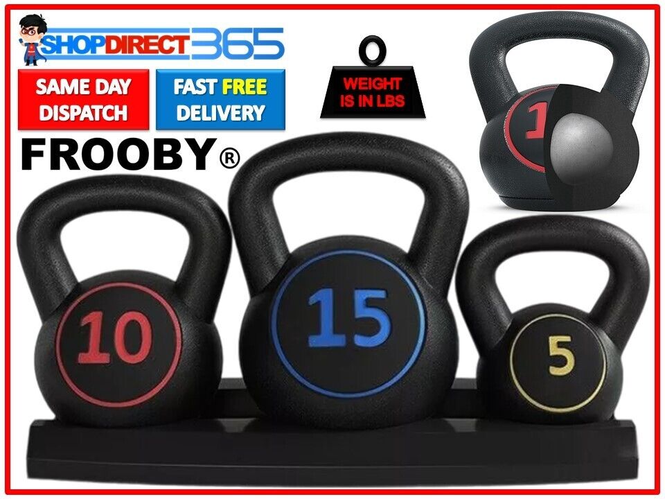 Vinyl Kettlebell Weights Sets Exercise Home Gym Rack Fitness Stand 5-15lbs 36-13