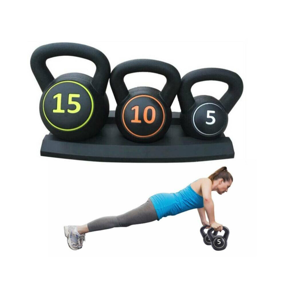 3pcsKettlebell Set Kettlebells Weight Weights Sets Exercise Gym + Rack