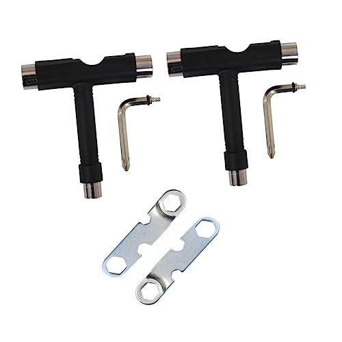 Toyvian 4 Pcs Multi-functional Skateboard Tool Kit with Allen Key and Spanner Portable Black Skate Wrench for Skateboards Roller Skates Longboards and Boards Maintenance