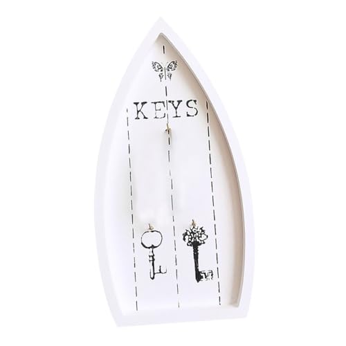 DECORNIJIA Mediterranean Style Key Hanger Wood Wall Mounted Storage Hooks Rack Organizer for Home Living Bathroom Kitchen White Backboard Wall Decor with Practical Hanging Function