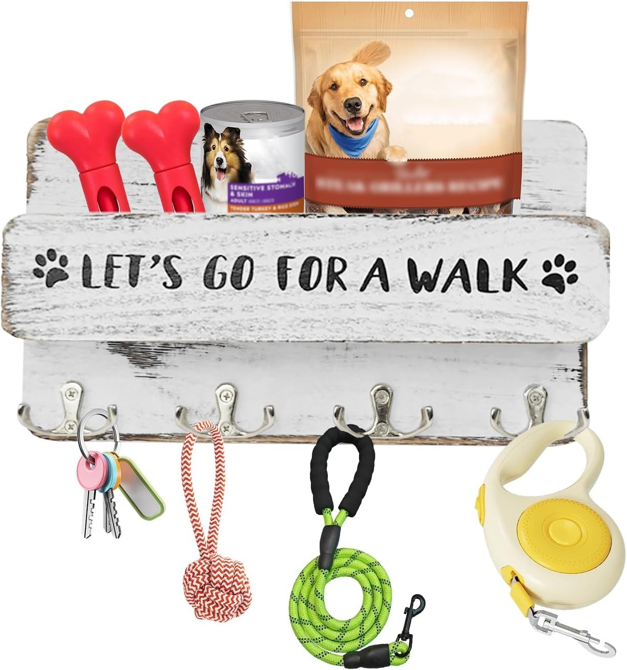 Wood Dog Leash Holder for Wall, Key Hangers with 4 Double Key Hooks for Wall, D