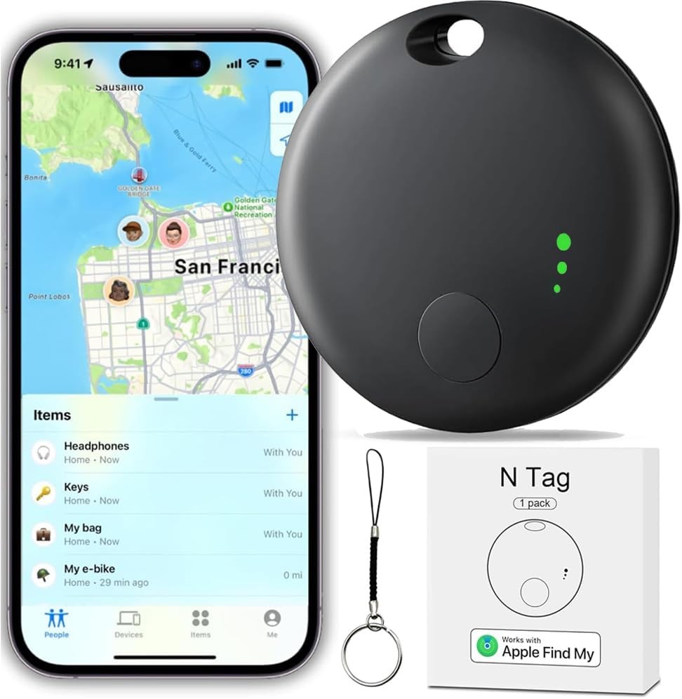 Bnlei Air Tracker Tag Works with Apple Find My (iOS Only) Includes Replaceable Battery, Bluetooth Smart Item Locator Key Finder for Keys, Luggage, Wallet, Car, Bicycle (1-Pack-Black)