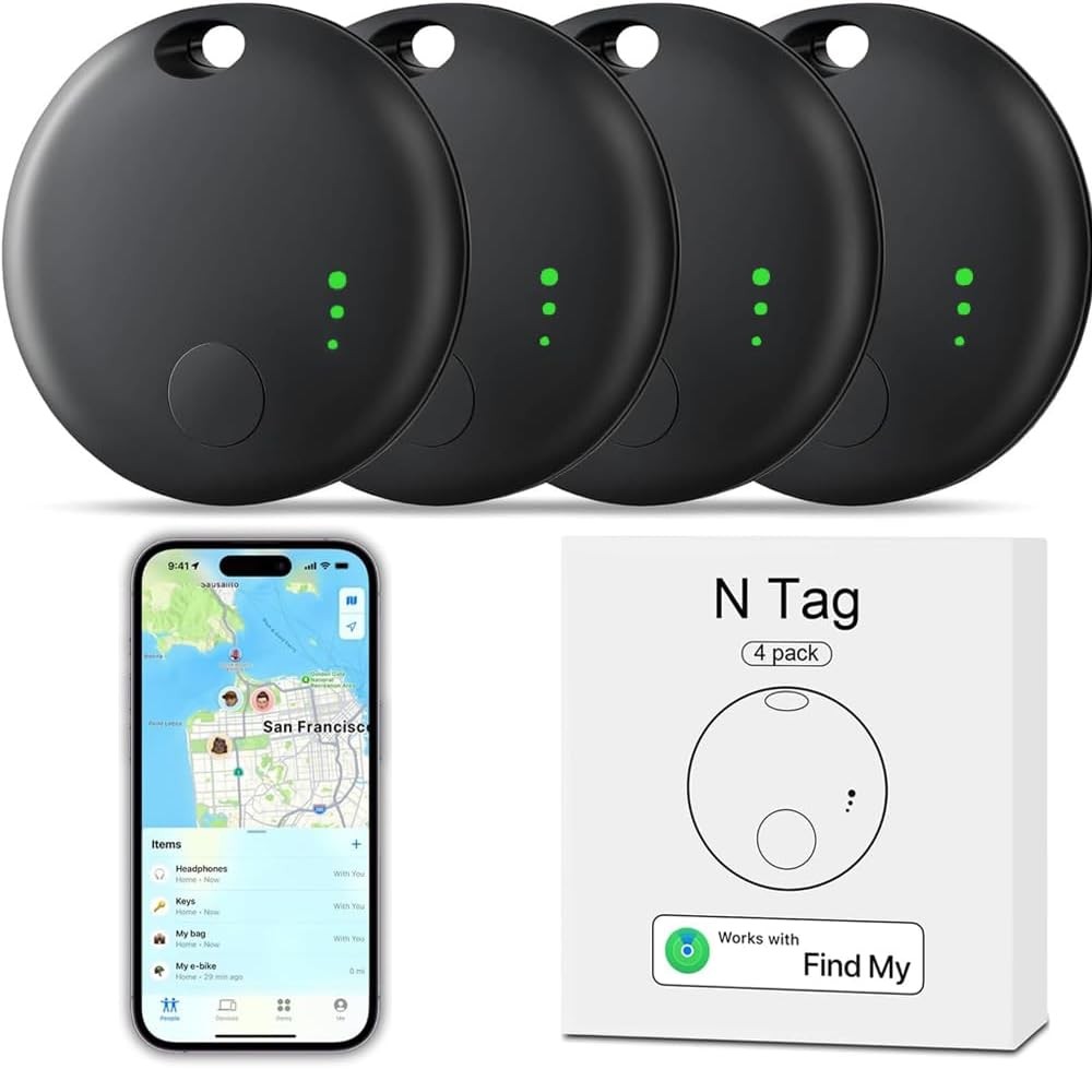 Air Tracker Tag Bluetooth Item Finder Compatible with Apple Find My APP (iOS Only), Smart Tag, Key Finder Locator for Keys/Luggage/Bags/Wallets, Replaceable Battery, IP67 Waterproof, 4 Pack, Black