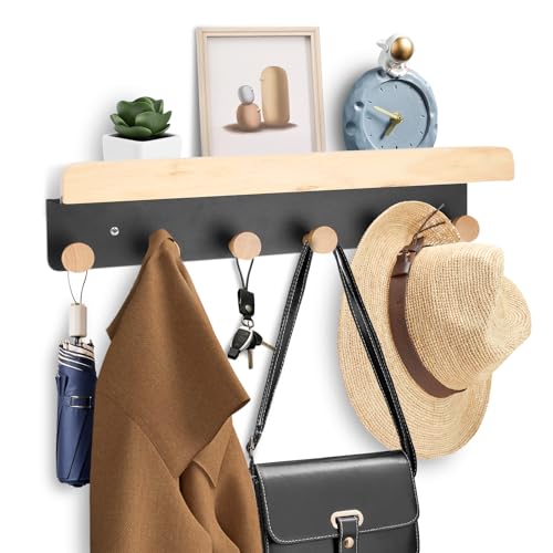 Gugxiom wooden key rack with shelf, key rack wall with 6 wooden hooks, key hanger for entrance area, hallway, kitchen, front door, bedroom