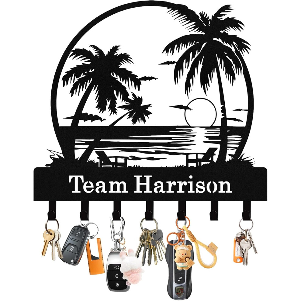 Personalized Beach Theme Key Holder Wall Mount, Metal Custom Key Holder Rack for Wall