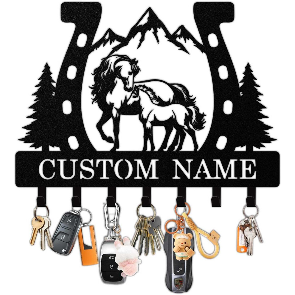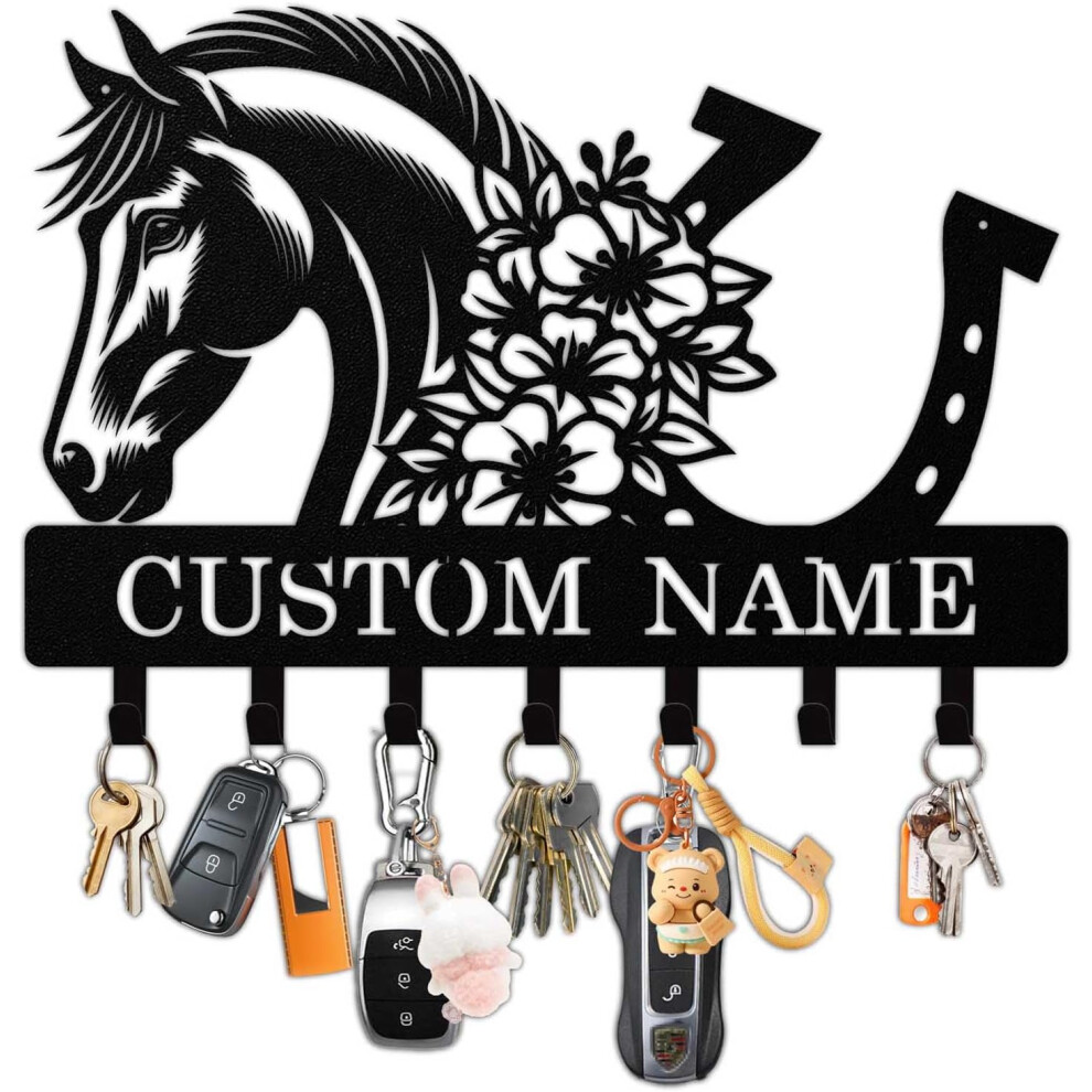 Personalized Horse Key Holder Wall Mount, Custom Metal Key Holder Rack for Wall with Hooks