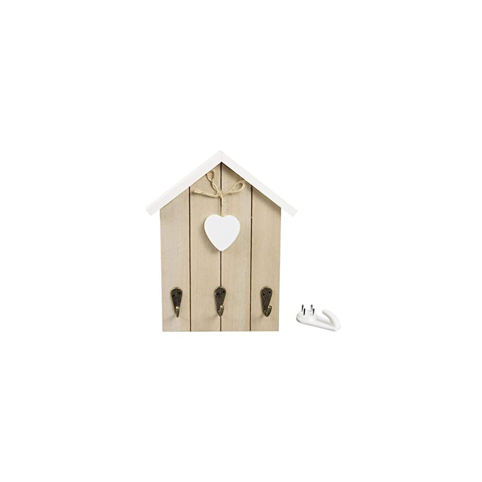 CONGARTENO Mediterranean Style Key Hanger Rack Wood Wall Mounted Hook Organizer for Home Entryway Living Bathroom White Backboard Storage Box for Clothes Robes Keys Sundries