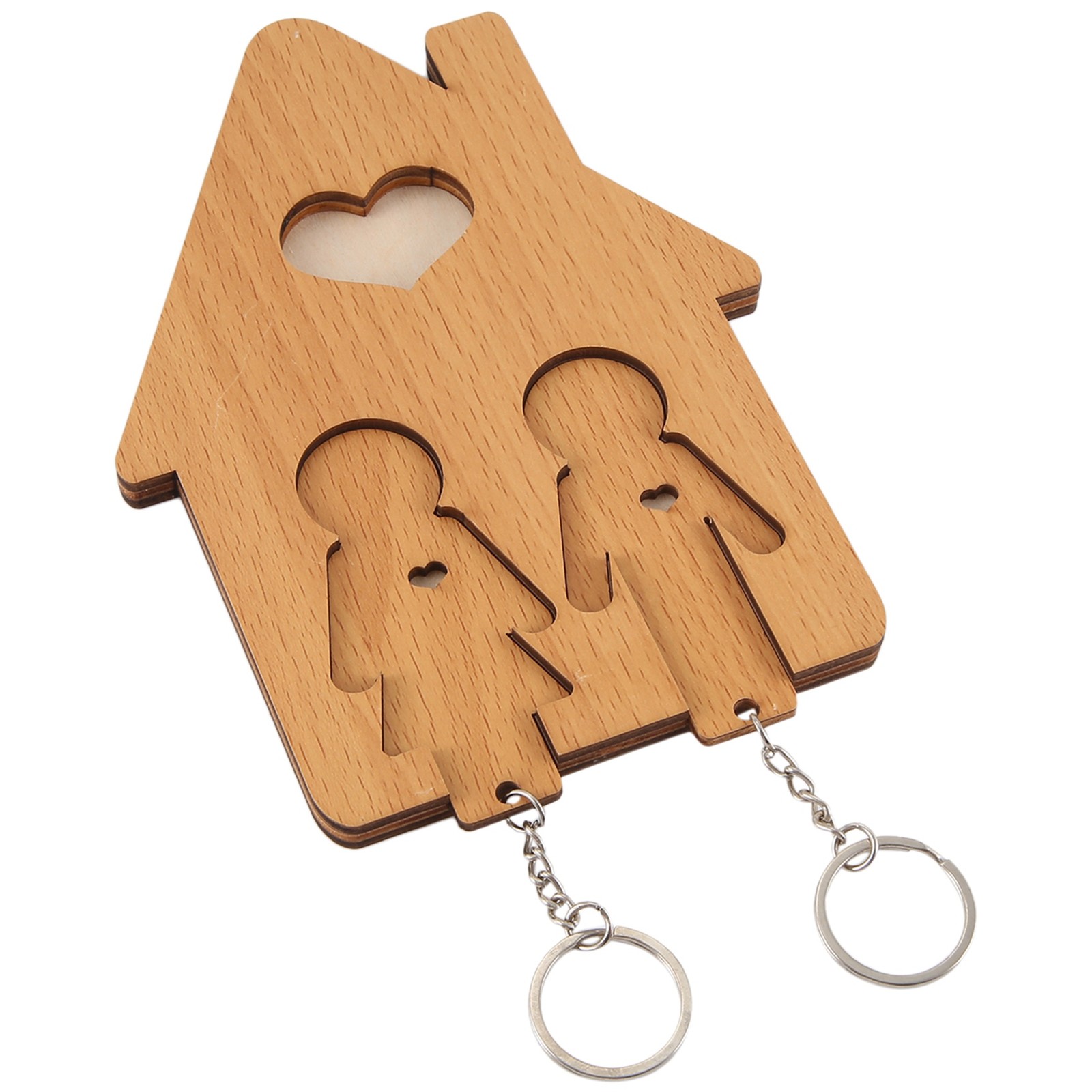 Wood Key Holder Wall-Mounted Key , Wooden Key Rack Key Holder for Wall with Key Hooks Couple