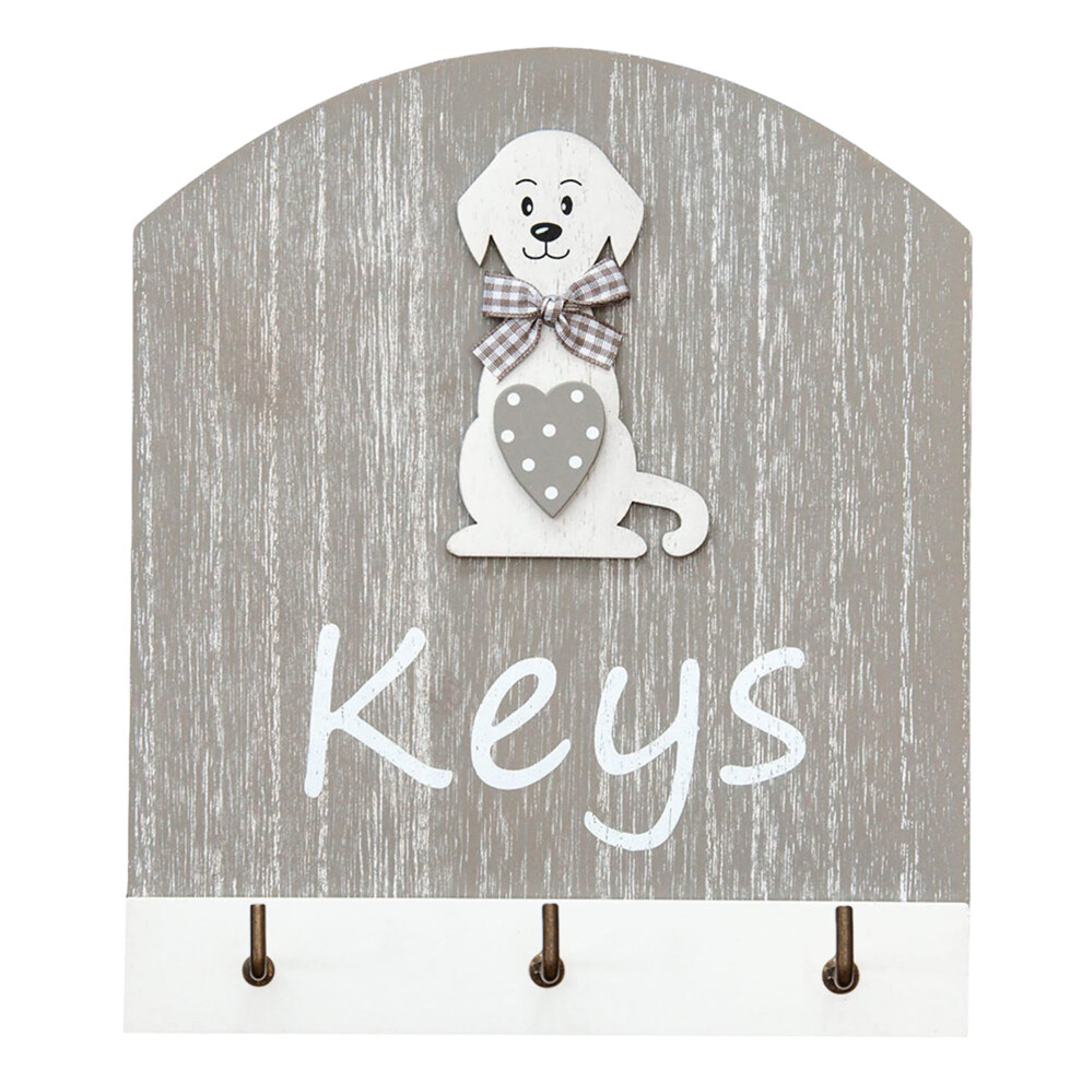 Key Holder Key Rack for Wall, Wooden Key Hanger with 3 Hooks Wall Mounted, Cute Dog Themed Home Decor Accessories and Gifts for Dog Lovers Owners