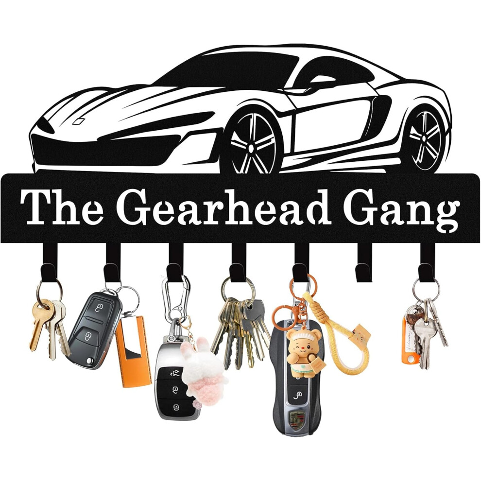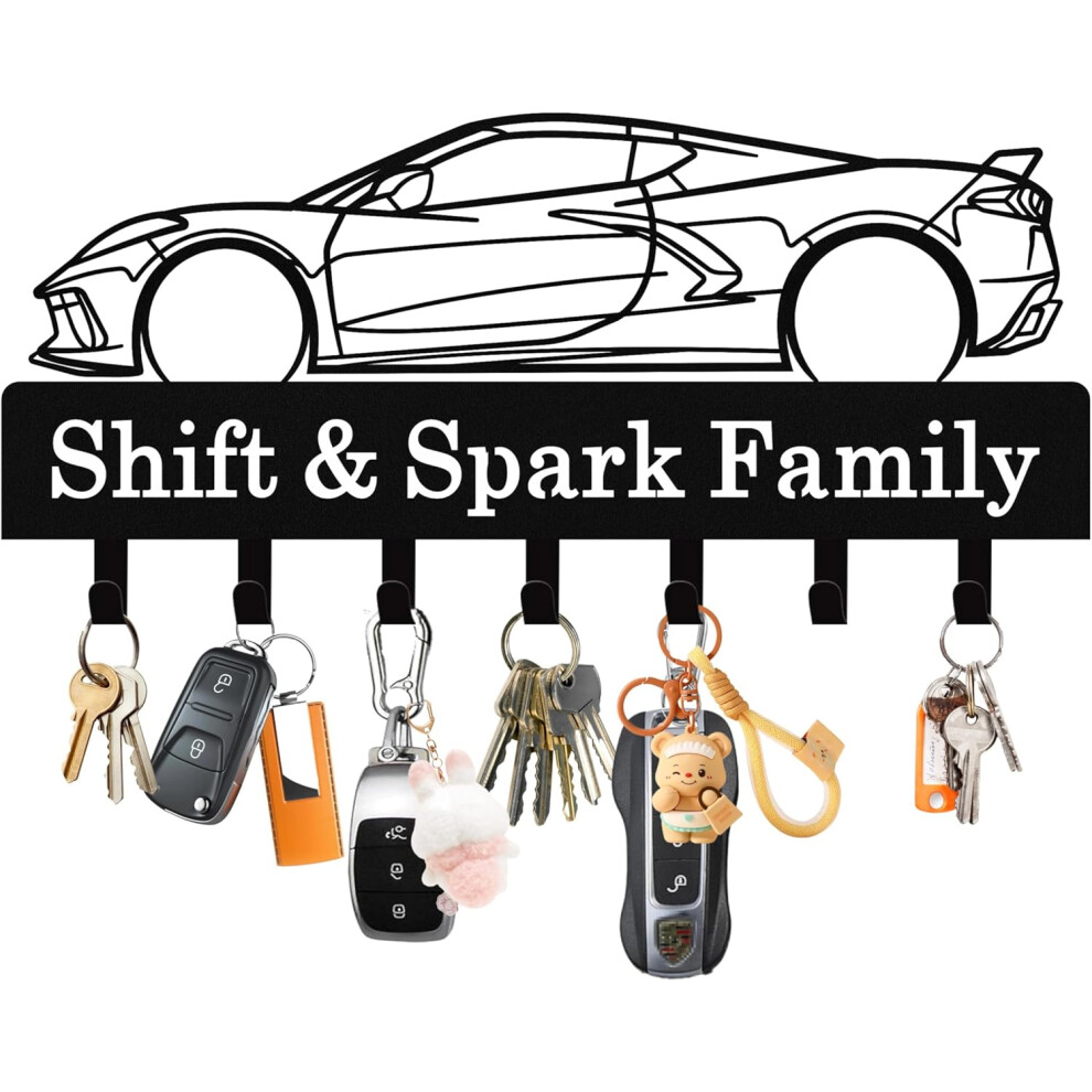 Personalized Car Key Holder Wall Mount, Custom Metal Key Rack for Wall with Hooks