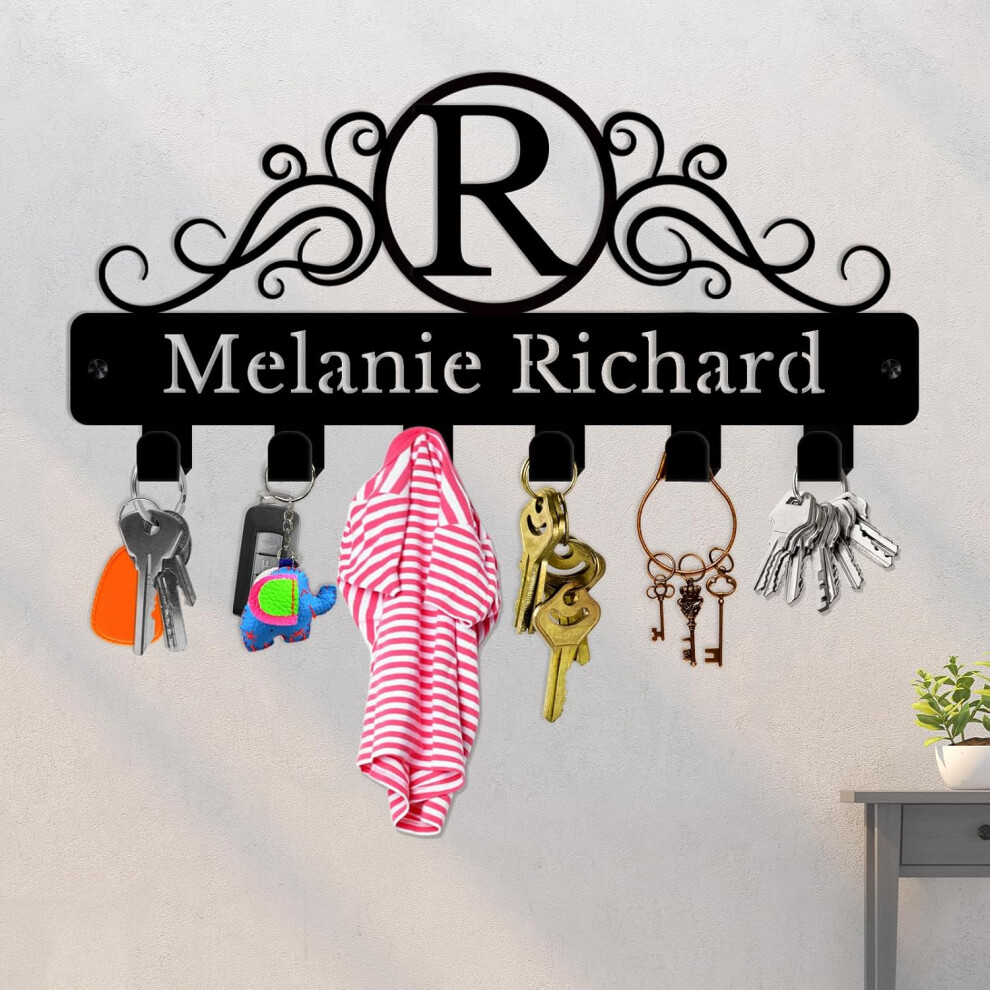 Personalized Home Key Holder Wall Mount, Custom Metal Key Holder Rack for Wall with Hooks