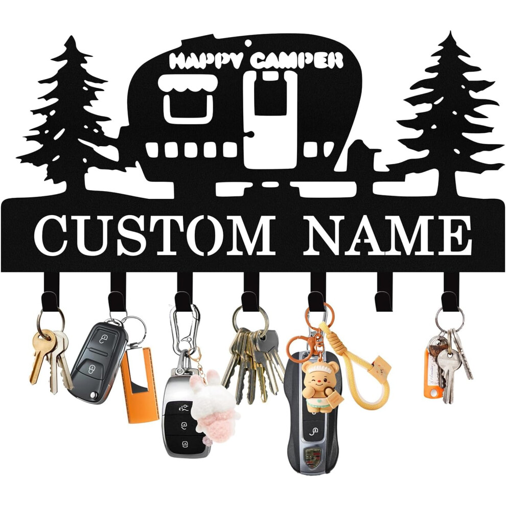 Personalized Camper Key Holder Wall Mount, Metal Custom Key Holder Rack for Wall with Hooks
