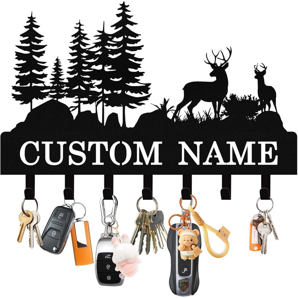 Custom Dear Forest Key Holder Wall Mount, Personalized Metal Key Rack for Wall with Hooks
