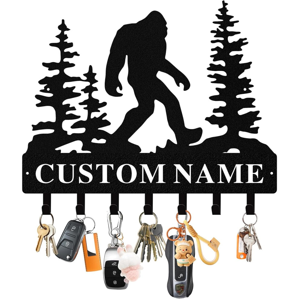 Personalized Bigfoot Key Holder Wall Mount, Metal Custom Key Holder Rack for Wall with Hooks