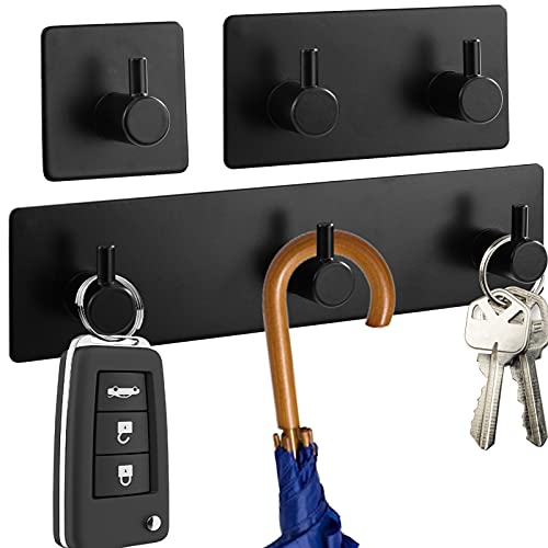 VIRFIN Key Holder for Wall with 2 Self-Adhesive Tapes No Damage Key Holder Rack for Wall with 3 Key Hooks for Entryway Door Bathroom Kitchen(Black